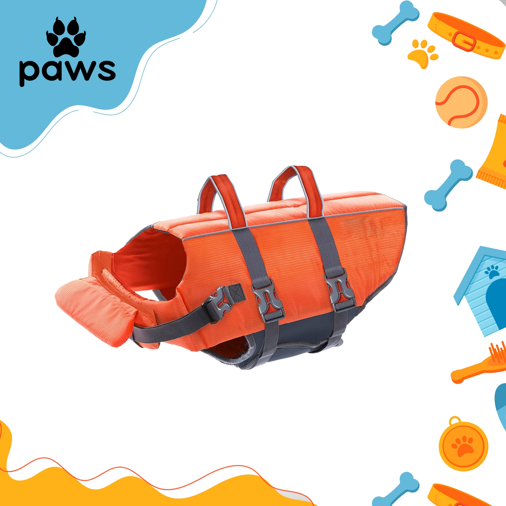 Colete salva-vidas para cães, perfeito para melhorar o conforto, segurança e garantir uma diversão segura. Fabricado com material resistente e respirável. Possui alças para segurar e resgatar o cão e detalhes refletivos para visibilidade noturna.